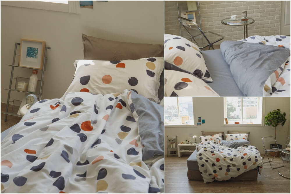純棉床包新色Choco選用低飽和度的藍色,沉穩中配上帶點童趣的彩色不規則點點,是否讓你想起小時候愛吃的M&M巧克力呢?兒時記憶總是那麼珍貴難忘,快擁抱心裡那位長不大的孩子吧~