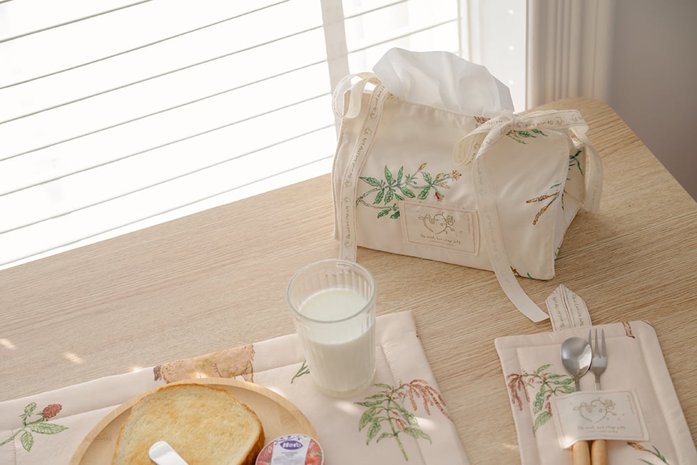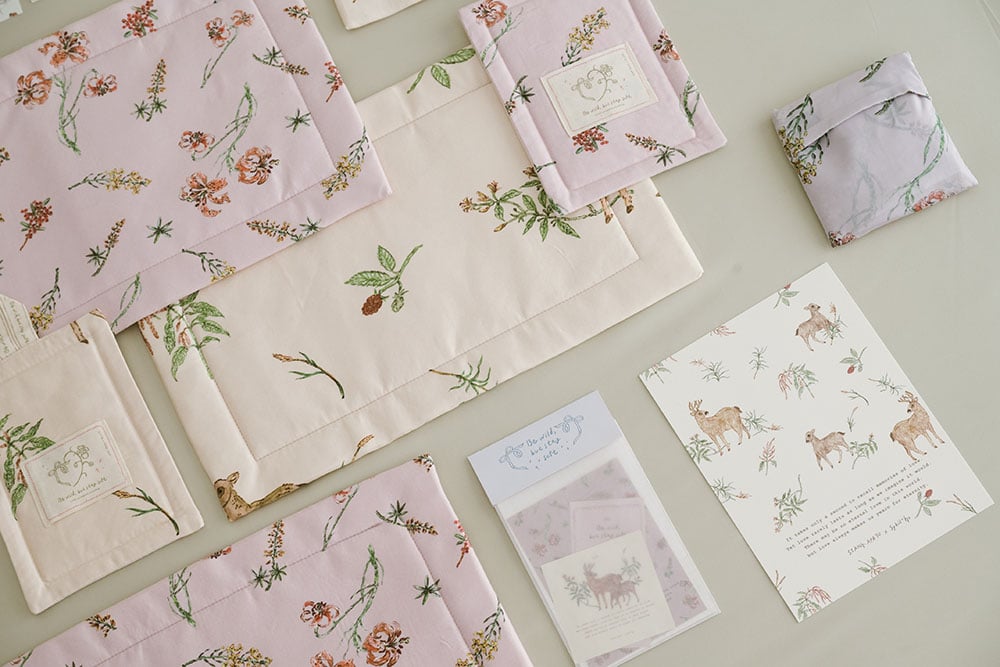 Sybil聯名系列的小物走的都是韓系路線,桌墊和杯墊組同樣採用春日拾光和小鹿舞曲印花製成。