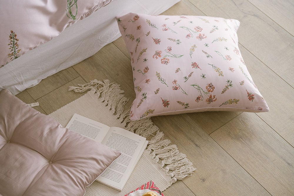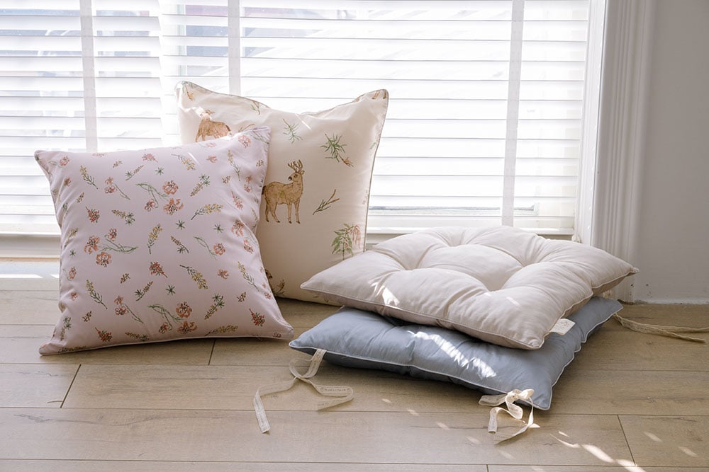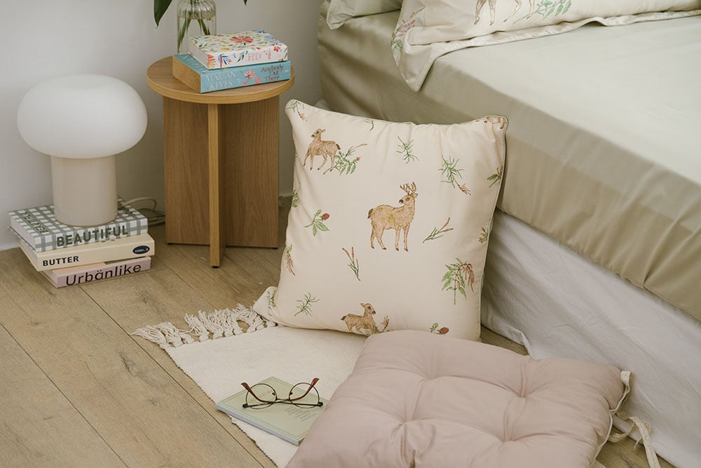 春日拾光和小鹿舞曲同步推出50x50cm抱枕,和床寢搭成一整套超級適合!