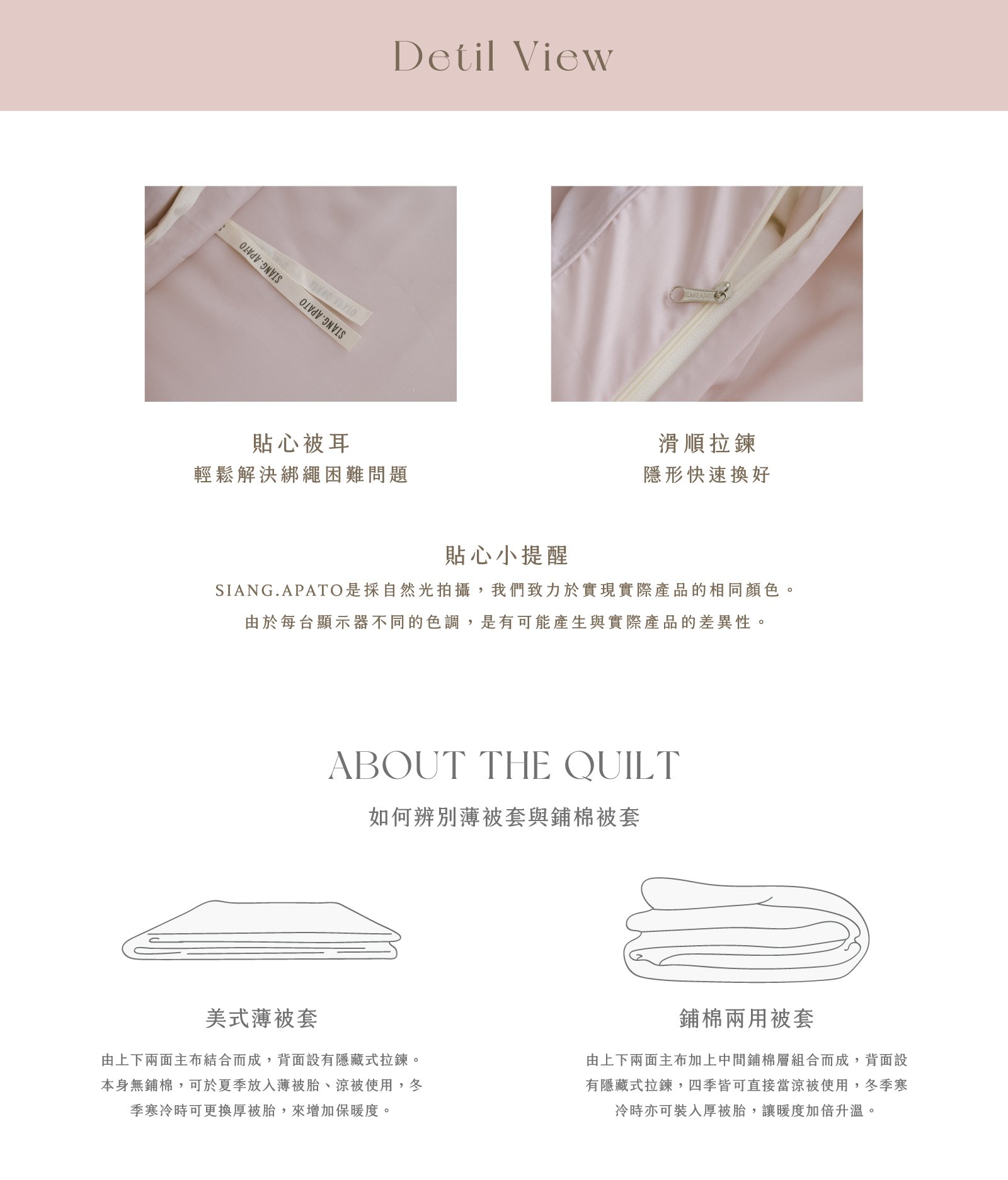 新品 春日拾光 - 天絲棉被套 / Sybil-Ho 聯名款 NT$6,100 NT$ 3,050 可國外配送 可國外配送 ※本商品圖案排列僅供示意,實際花紋排列依製作時裁切的布料為主,不會100%與照片相同。 「一點一滴拾起,專屬春日的盎然生機。」 ◆ 61%天絲混紡39%長絨棉 ,吸濕透氣、手感紮實 ◆ 升級萊賽爾Micro纖維,更加細緻柔滑 ◆ Made in Taiwan 台灣製造,品質安心 NT$6,100 NT$ 3,050 #天絲#棉被#被套#聯名#天絲棉 尺寸 單人雙人 規格 薄被套鋪棉兩用被套 床包尺寸 寬 長 高 公分 床包鋪棉 需要 不需要 被套尺寸 寬 長 公分 被套鋪棉 需要 不需要 價格試算 數量 加入購物車 立即購買 優惠活動 消費滿 990元 即可用優惠價格加購商品 台中購物節合作5倍店家|官網及北屯門市限定! Line詢問 商品細節 尺寸指南 洗滌方式 商品評價(0)