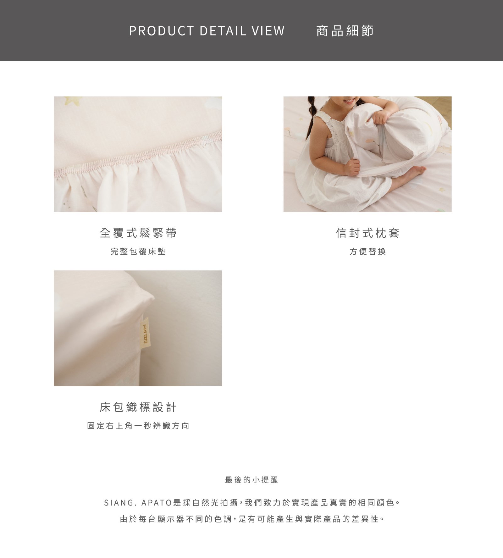 邦妮星球 - 純棉抗菌床包組(床包+枕套) NT$2,760 NT$ 1,380 可國外配送 可國外配送 「跟著邦妮領航員,啟動星球探索之旅!」 ◆ 100% Cotton 40支精梳純棉,透氣柔軟 ◆ Ag+銀離子添加,物理性抗菌除臭 ◆ Made in Taiwan 台灣製造,品質安心 ◆ 本系列僅限單人尺寸(3.5尺) NT$2,760 NT$ 1,380 #精梳棉#床包組#單人床包#兒童 床包尺寸 寬 長 高 公分 床包鋪棉 需要 不需要 被套尺寸 寬 長 公分 被套鋪棉 需要 不需要 價格試算 數量 加入購物車 立即購買 優惠活動 消費滿 990元 即可用優惠價格加購商品 台中購物節合作5倍店家|官網及北屯門市限定! Line詢問 商品細節 尺寸指南 洗滌方式 商品評價(0)