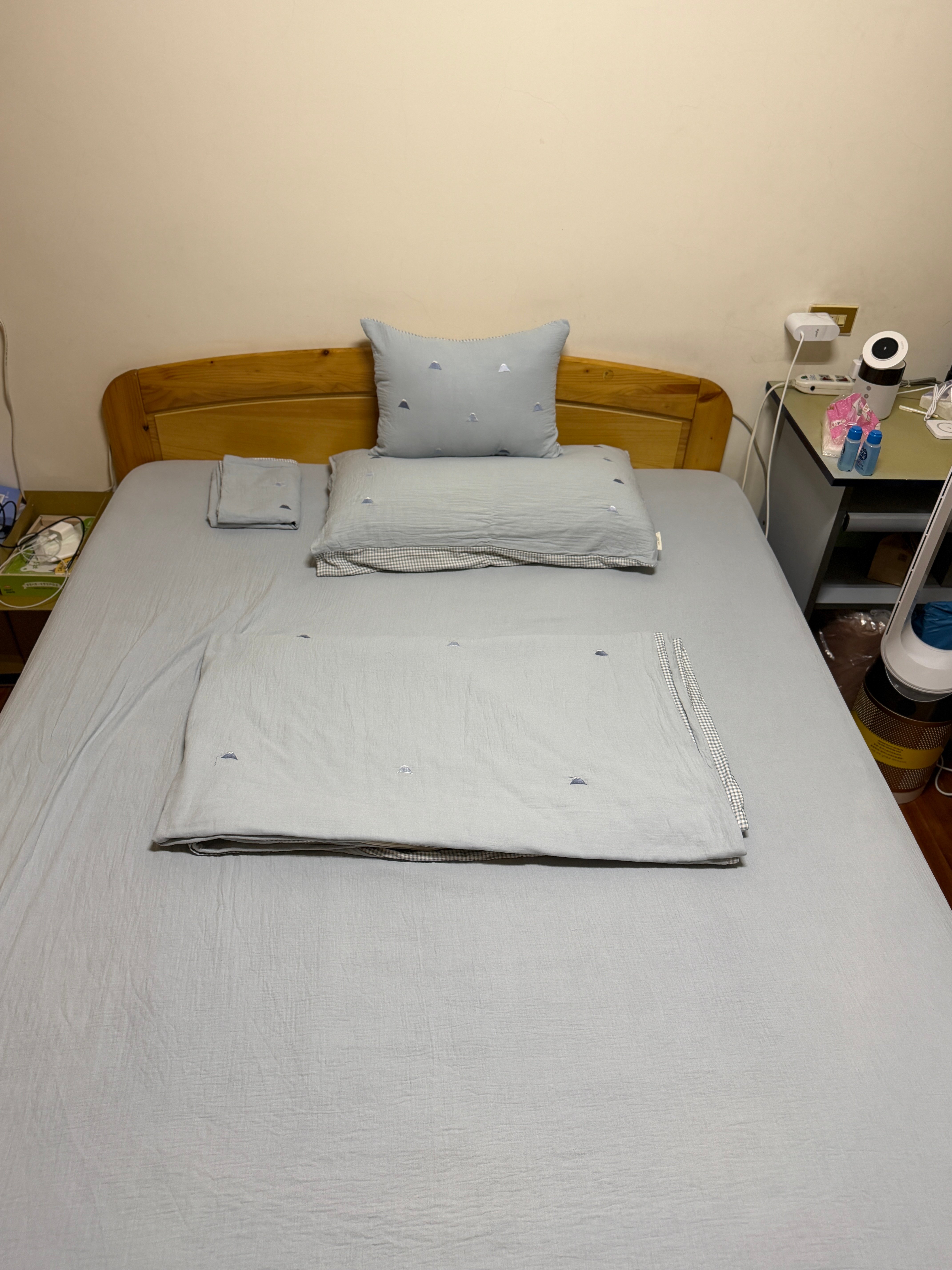 - 小富士 - 二重紗 / 雙層紗床包組 ( 素色床包 + 刺繡枕套 ):單人 x 1