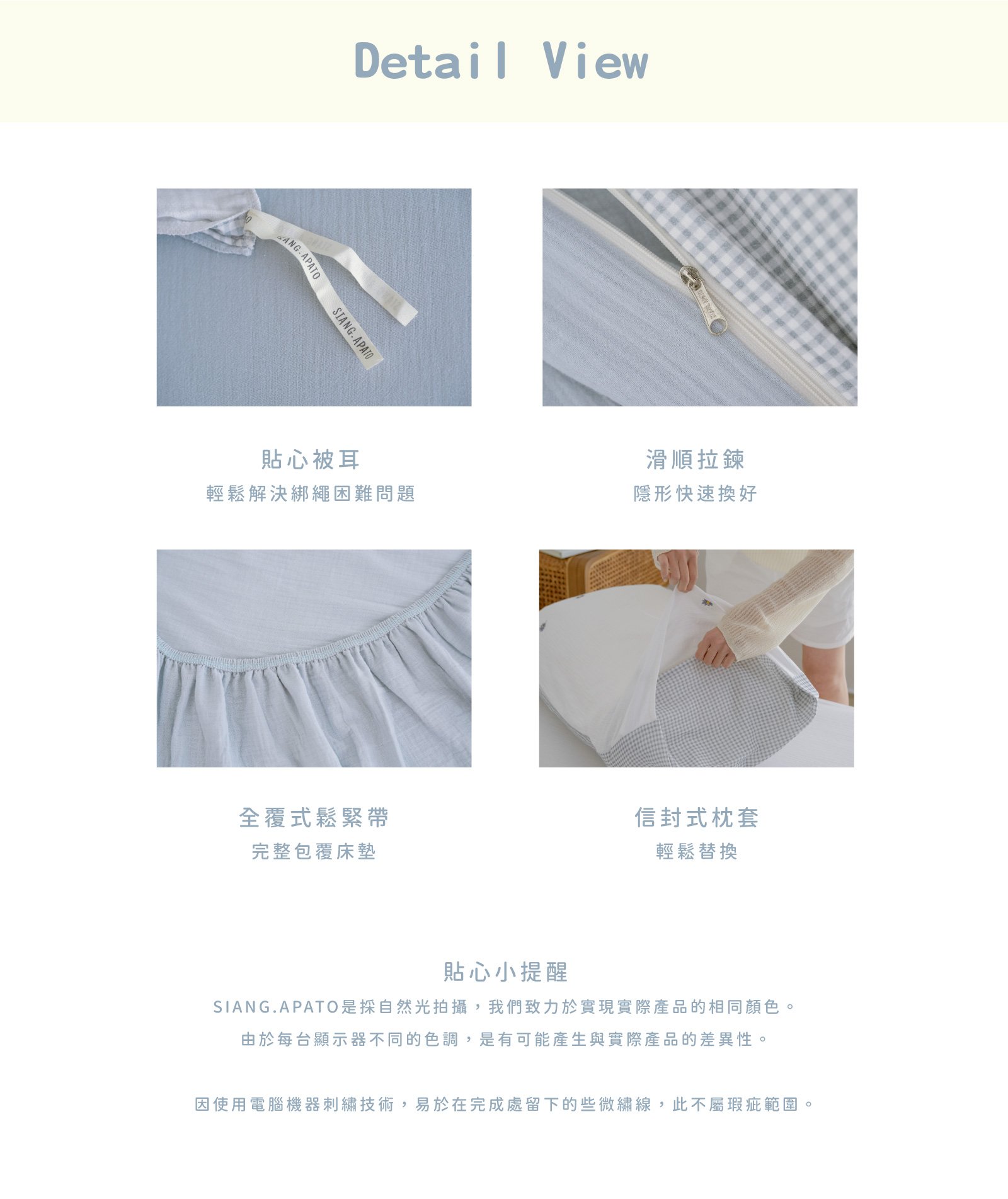 ◆ 二重紗/雙層紗材質,蓬鬆透氣、貼身柔軟