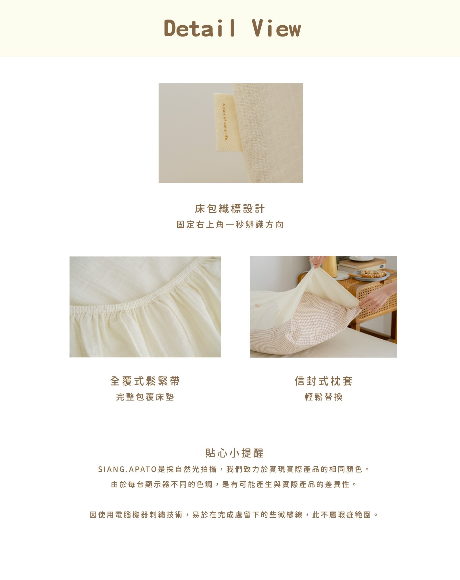 繫心 - 二重紗 / 雙層紗床包組 ( 素色床包 + 刺繡枕套 ) NT$4,160 NT$ 2,080 可國外配送 可國外配送 「仔細在心上打了結,那是輕輕的諾言。」 ◆ 100% Cotton 長絨綿花製成,細緻耐用 ◆ 二重紗/雙層紗材質,蓬鬆透氣、貼身柔軟 ◆ Made in Taiwan 台灣製造,品質安心 NT$4,160 NT$ 2,080 #二重紗(雙層紗)#床包組#單人床包#雙人床包#雙人加大床包#雙人特大床包#刺繡#素色 尺寸 單人雙人加大特大 床包尺寸 寬 長 高 公分 床包鋪棉 需要 不需要 被套尺寸 寬 長 公分 被套鋪棉 需要 不需要 價格試算 數量 加入購物車 立即購買 優惠活動 聖誕好眠. 長絨棉系列88折 消費滿 990元 即可用優惠價格加購商品 台中購物節合作5倍店家|官網及北屯門市限定! Line詢問 商品細節 尺寸指南 洗滌方式 商品評價(0)