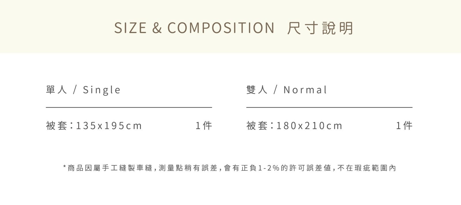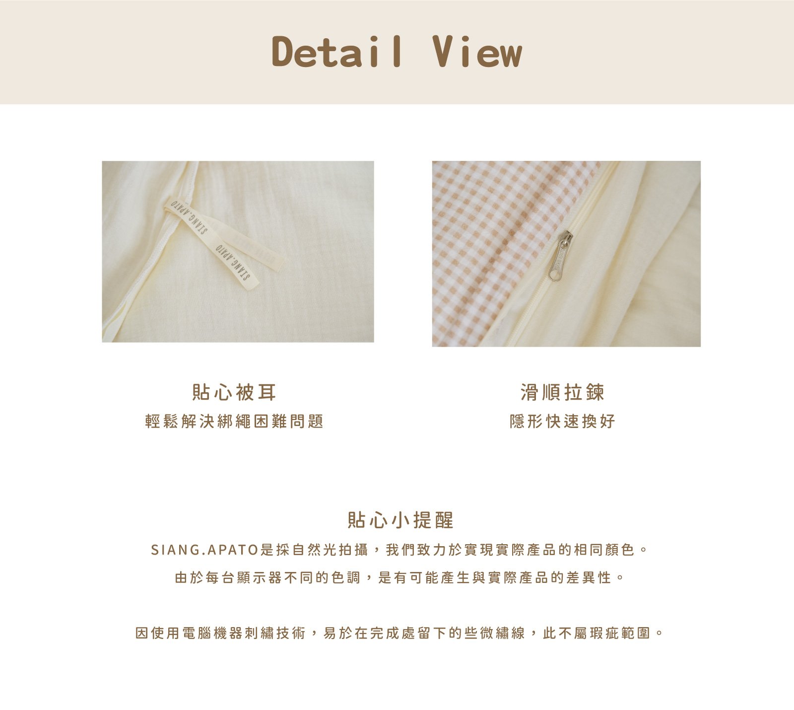 繫心 - 二重紗 / 雙層紗刺繡被套 NT$4,360 NT$ 2,180 可國外配送 可國外配送 「仔細在心上打了結,那是輕輕的諾言。」 ◆ 100% Cotton 長絨綿花製成,細緻耐用 ◆ 二重紗/雙層紗材質,蓬鬆透氣、貼身柔軟 ◆ Made in Taiwan 台灣製造,品質安心 NT$4,360 NT$ 2,180 #二重紗(雙層紗)#棉被#被套#刺繡 尺寸 單人雙人 規格 薄被套鋪棉兩用被套 床包尺寸 寬 長 高 公分 床包鋪棉 需要 不需要 被套尺寸 寬 長 公分 被套鋪棉 需要 不需要 價格試算 數量 加入購物車 立即購買 優惠活動 聖誕好眠. 長絨棉系列88折 消費滿 990元 即可用優惠價格加購商品 台中購物節合作5倍店家|官網及北屯門市限定! Line詢問 商品細節 尺寸指南 洗滌方式 商品評價(0)