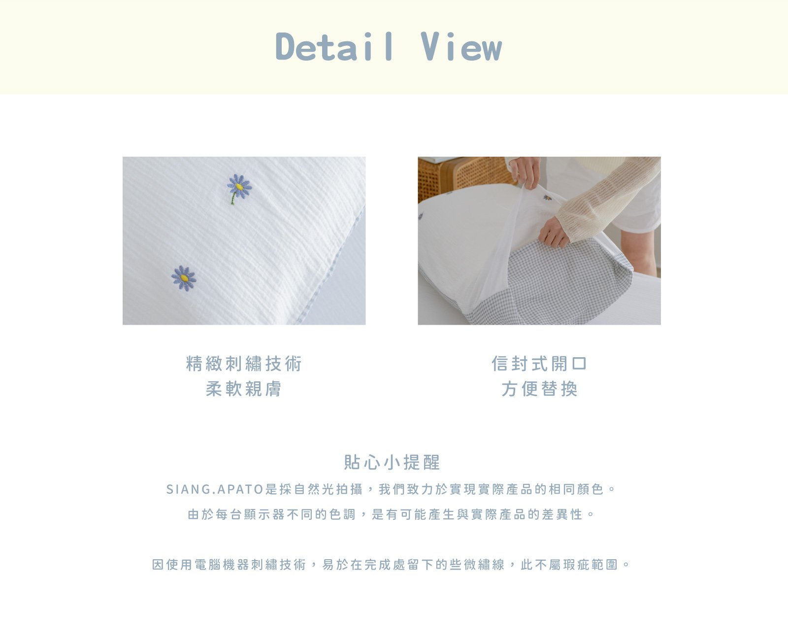 花漾 - 二重紗 / 雙層紗刺繡枕套 / 2入組 NT$1,798 NT$ 899 可國外配送 可國外配送 「最美好的時光是,當花開滿整片山丘。」 ◆ 100% Cotton 長絨綿花製成,細緻耐用 ◆ 二重紗/雙層紗材質,蓬鬆透氣、貼身柔軟 ◆ Made in Taiwan 台灣製造,品質安心 NT$1,798 NT$ 899 #二重紗(雙層紗)#枕套#刺繡 床包尺寸 寬 長 高 公分 床包鋪棉 需要 不需要 被套尺寸 寬 長 公分 被套鋪棉 需要 不需要 價格試算 數量 加入購物車 立即購買 優惠活動 聖誕好眠. 長絨棉系列88折 消費滿 990元 即可用優惠價格加購商品 台中購物節合作5倍店家|官網及北屯門市限定! Line詢問 商品細節 尺寸指南 洗滌方式 商品評價(0)