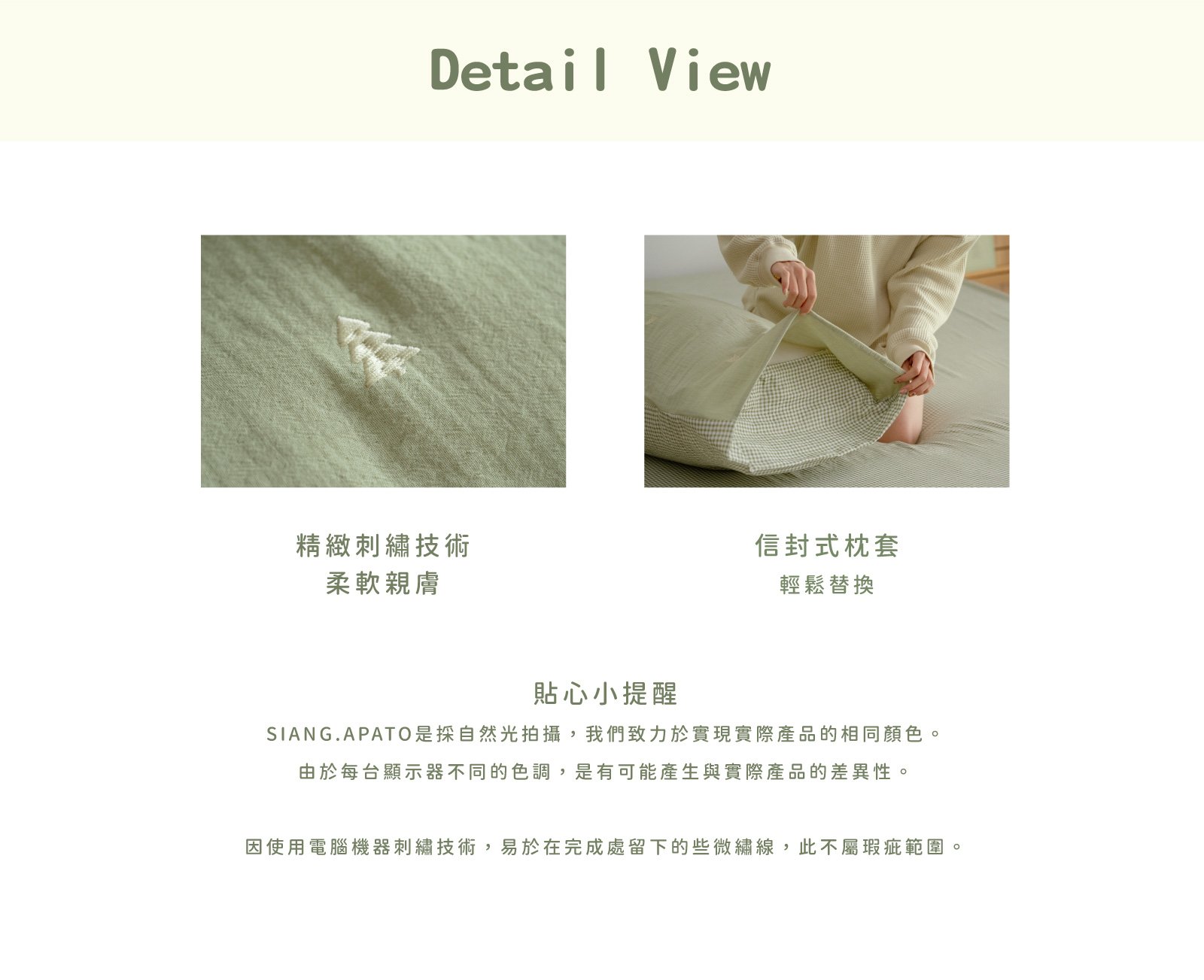 森語 - 二重紗 / 雙層紗刺繡枕套 / 2入組 NT$1,798 NT$ 899 可國外配送 可國外配送 「森林從不說話,深深呼吸就能聽見訊息。」 ◆ 100% Cotton 長絨綿花製成,細緻耐用 ◆ 二重紗/雙層紗材質,蓬鬆透氣、貼身柔軟 ◆ Made in Taiwan 台灣製造,品質安心 NT$1,798 NT$ 899 #二重紗(雙層紗)#枕套#刺繡 床包尺寸 寬 長 高 公分 床包鋪棉 需要 不需要 被套尺寸 寬 長 公分 被套鋪棉 需要 不需要 價格試算 數量 加入購物車 立即購買 優惠活動 聖誕好眠. 長絨棉系列88折 消費滿 990元 即可用優惠價格加購商品 台中購物節合作5倍店家|官網及北屯門市限定! Line詢問 商品細節 尺寸指南 洗滌方式 商品評價(0)