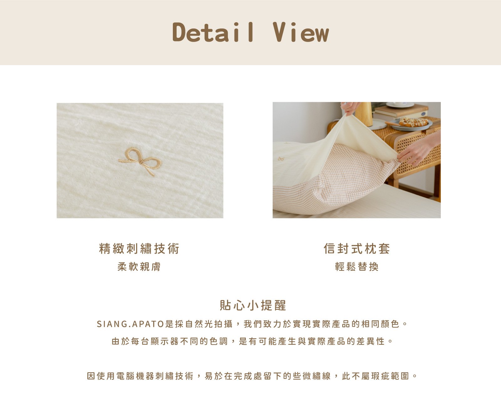 繫心 - 二重紗 / 雙層紗刺繡枕套 / 2入組 NT$1,798 NT$ 899 可國外配送 可國外配送 「仔細在心上打了結,那是輕輕的諾言。」 ◆ 100% Cotton 長絨綿花製成,細緻耐用 ◆ 二重紗/雙層紗材質,蓬鬆透氣、貼身柔軟 ◆ Made in Taiwan 台灣製造,品質安心 NT$1,798 NT$ 899 #二重紗(雙層紗)#枕套#刺繡 床包尺寸 寬 長 高 公分 床包鋪棉 需要 不需要 被套尺寸 寬 長 公分 被套鋪棉 需要 不需要 價格試算 數量 加入購物車 立即購買 優惠活動 聖誕好眠. 長絨棉系列88折 消費滿 990元 即可用優惠價格加購商品 台中購物節合作5倍店家|官網及北屯門市限定! Line詢問 商品細節 尺寸指南 洗滌方式 商品評價(0)