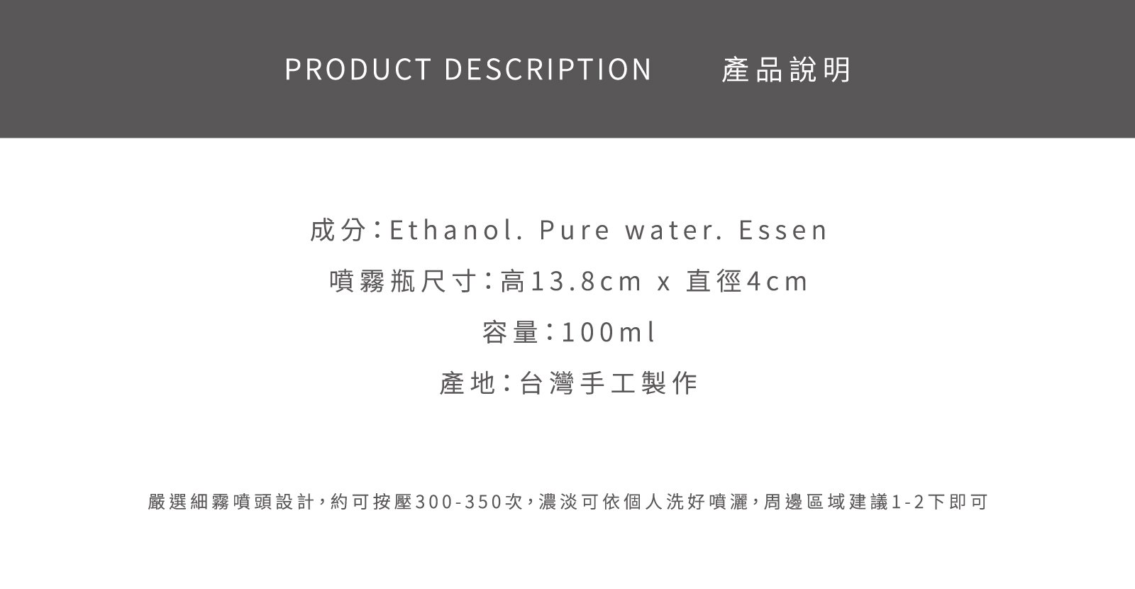 「生活儀式感很簡單,香味先出發。」 ◆ 前調 top note-佛手柑 Bergamot.橙子 Orange.綠茶 Green tea ◆ 中調 heart note-山蒼子 Litsea cubeba.茉莉 Jasmine ◆ 後調 base note-肉荳蔻 Nutmeg.木香 Woods.琥珀 Amber
