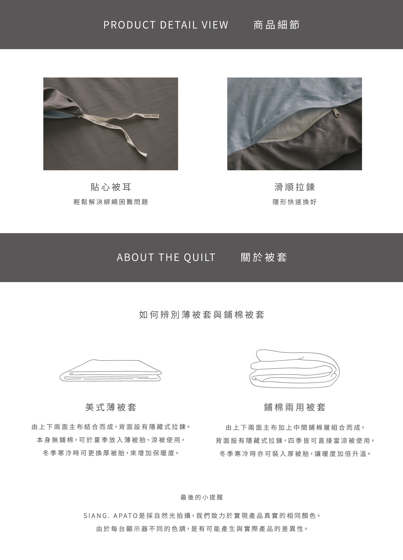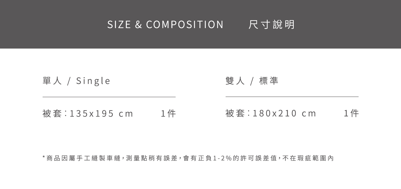 天藍岩灰 - 有機棉被套 NT$3,760 NT$ 1,880 可國外配送 可國外配送 「藍天與灰岩,誰才是寧靜的永恆?」 ◆ 100% Cotton 長絨綿花製成 ◆ GOTS認證有機棉,環保無毒 ◆ Made in Taiwan 台灣製造,品質安心 NT$3,760 NT$ 1,880 #棉被#有機棉#被套 尺寸 雙人 規格 薄被套 床包尺寸 寬 長 高 公分 床包鋪棉 需要 不需要 被套尺寸 寬 長 公分 被套鋪棉 需要 不需要 價格試算 數量 加入購物車 立即購買 優惠活動 聖誕好眠. 長絨棉系列88折 消費滿 990元 即可用優惠價格加購商品 台中購物節合作5倍店家|官網及北屯門市限定! Line詢問 商品細節 尺寸指南 洗滌方式 商品評價(0)