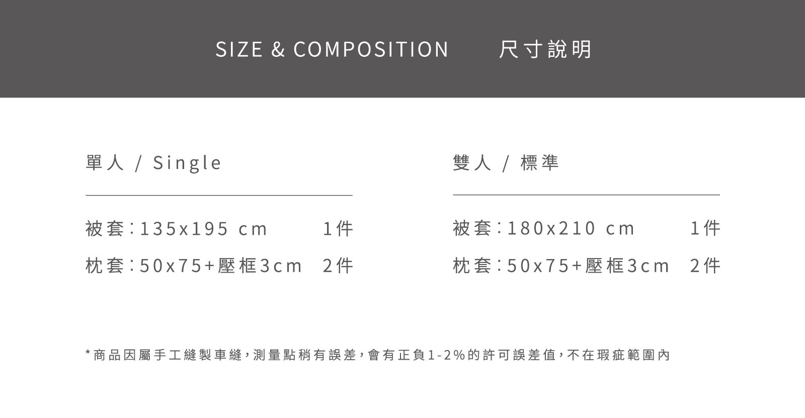 藍花亞麻 - 天絲被套組 ( 被套 + 枕套 ) NT$4,560 NT$ 2,280 可國外配送 可國外配送 NT$4,560 NT$ 2,280 #天絲#棉被#素色 尺寸 單人雙人 規格 薄被套鋪棉兩用被套 床包尺寸 寬 長 高 公分 床包鋪棉 需要 不需要 被套尺寸 寬 長 公分 被套鋪棉 需要 不需要 價格試算 數量 加入購物車 立即購買 優惠活動 消費滿 990元 即可用優惠價格加購商品 台中購物節合作5倍店家|官網及北屯門市限定! Line詢問 商品細節 尺寸指南 洗滌方式 商品成份 商品評價(15)
