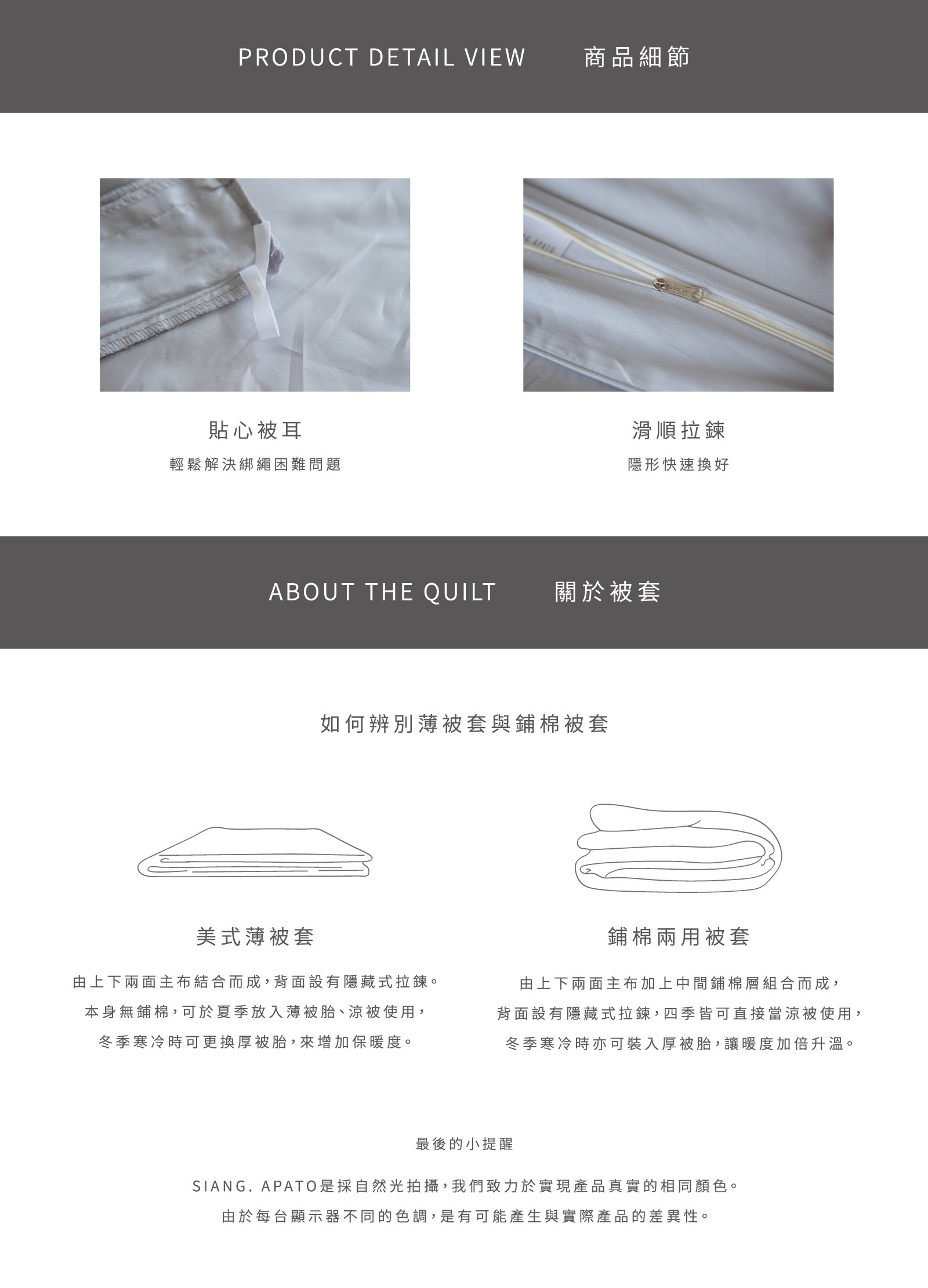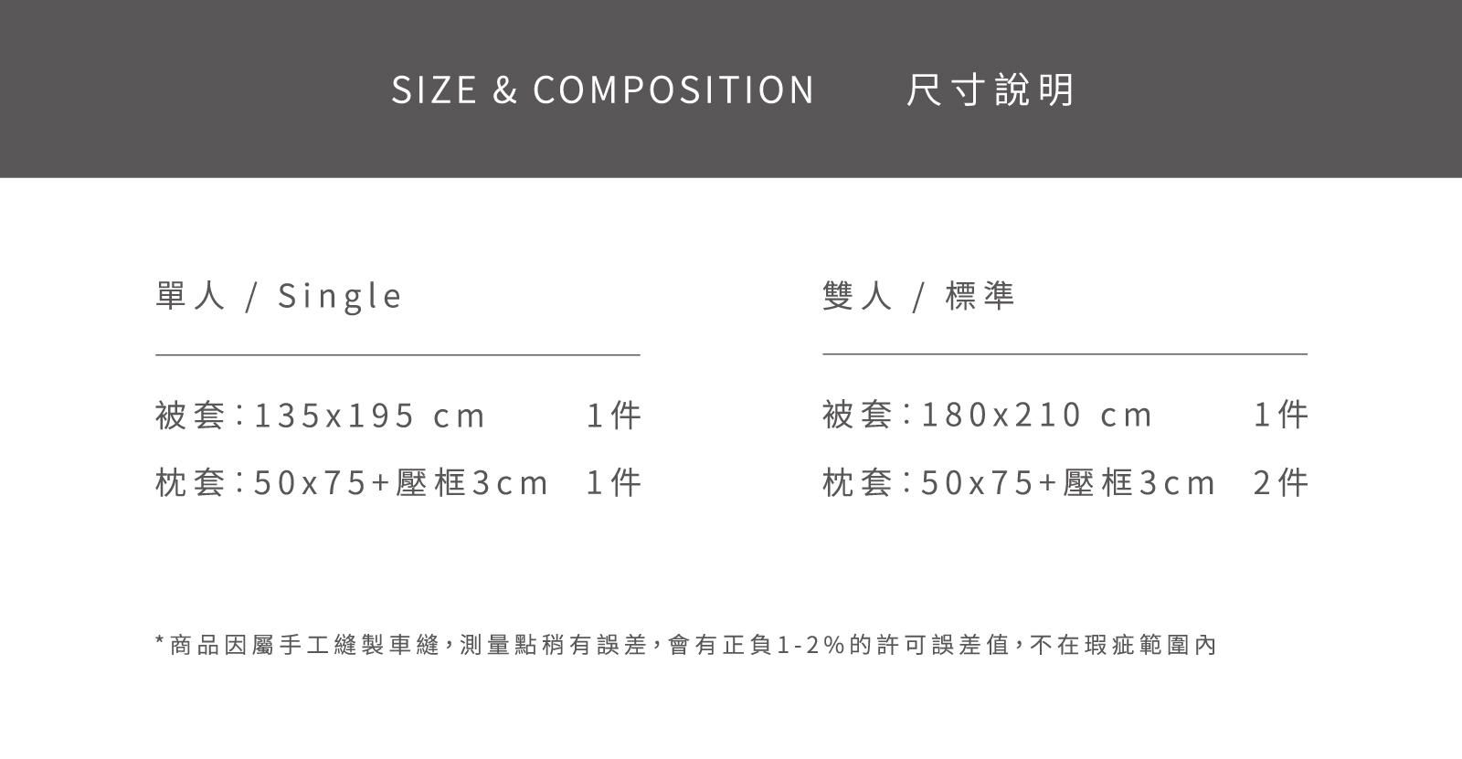 鯨語 - 天絲被套組 ( 被套 + 枕套 ) NT$4,560 NT$ 2,280 可國外配送 可國外配送 「海洋沉潛,你是否也聽見40赫茲的呢喃?」 ◆ 正廠授權100% Tencel 60支天絲™ ,吸濕透氣 ◆ 頂級萊賽爾LF纖維,觸感細緻滑順 ◆ Made in Taiwan 台灣製造,品質安心 NT$4,560 NT$ 2,280 #天絲#棉被 尺寸 單人雙人 規格 薄被套鋪棉兩用被套 床包尺寸 寬 長 高 公分 床包鋪棉 需要 不需要 被套尺寸 寬 長 公分 被套鋪棉 需要 不需要 價格試算 數量 加入購物車 立即購買 優惠活動 消費滿 990元 即可用優惠價格加購商品 台中購物節合作5倍店家|官網及北屯門市限定! Line詢問 商品細節 尺寸指南 洗滌方式 商品評價(10)