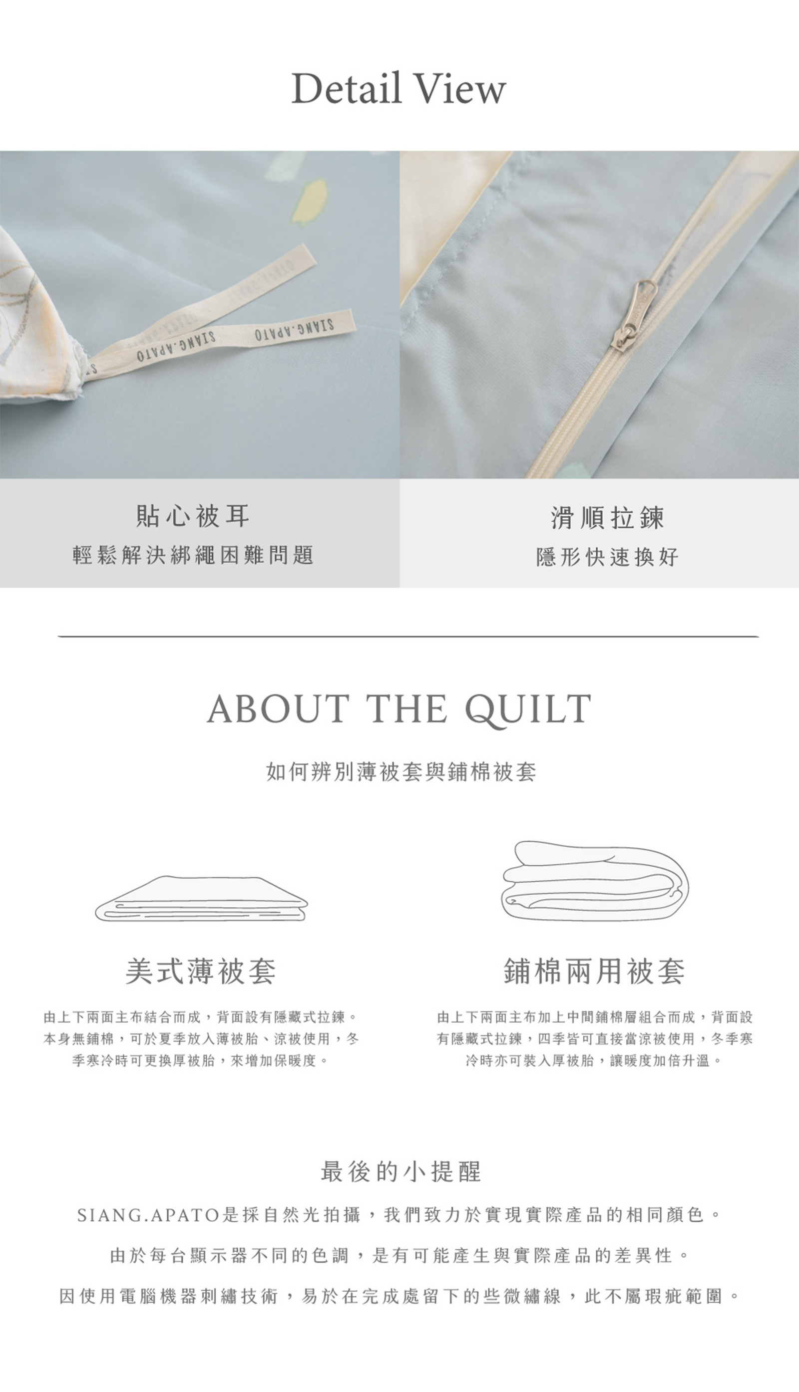 Whisper - 天絲被套 NT$3,560 NT$ 1,780 可國外配送 可國外配送 「低語如風,悄然拂過心海波光。」 ◆ 正廠授權100% Tencel 60支天絲™ ,吸濕透氣 ◆ 高品質萊賽爾LF纖維,觸感細緻滑順 ◆ Made in Taiwan 台灣製造,品質安心 NT$3,560 NT$ 1,780 #天絲#棉被#被套 尺寸 單人雙人 規格 薄被套鋪棉兩用被套 床包尺寸 寬 長 高 公分 床包鋪棉 需要 不需要 被套尺寸 寬 長 公分 被套鋪棉 需要 不需要 價格試算 數量 加入購物車 立即購買 優惠活動 消費滿 990元 即可用優惠價格加購商品 台中購物節合作5倍店家|官網及北屯門市限定! Line詢問 商品細節 尺寸指南 洗滌方式 商品評價(0)