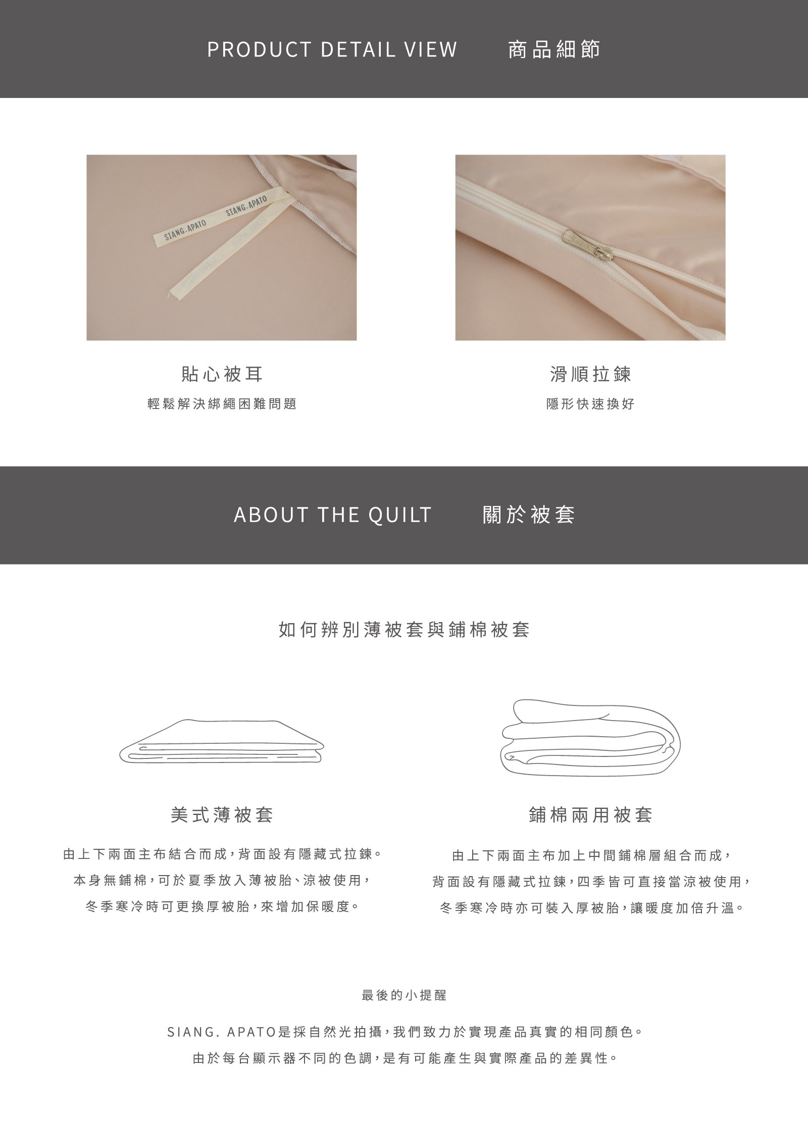 韶光 - 天絲被套 NT$3,560 NT$ 1,780 可國外配送 可國外配送 「韶光輕流而過,停駐夢的軌跡。」 ◆ 正廠授權100% Tencel 60支天絲™ ,吸濕透氣 ◆ 高品質萊賽爾LF纖維,觸感細緻滑順 ◆ Made in Taiwan 台灣製造,品質安心 NT$3,560 NT$ 1,780 #天絲#棉被#被套 尺寸 單人雙人 規格 薄被套鋪棉兩用被套 床包尺寸 寬 長 高 公分 床包鋪棉 需要 不需要 被套尺寸 寬 長 公分 被套鋪棉 需要 不需要 價格試算 數量 加入購物車 立即購買 優惠活動 消費滿 990元 即可用優惠價格加購商品 台中購物節合作5倍店家|官網及北屯門市限定! Line詢問 商品細節 尺寸指南 洗滌方式 商品評價(0)