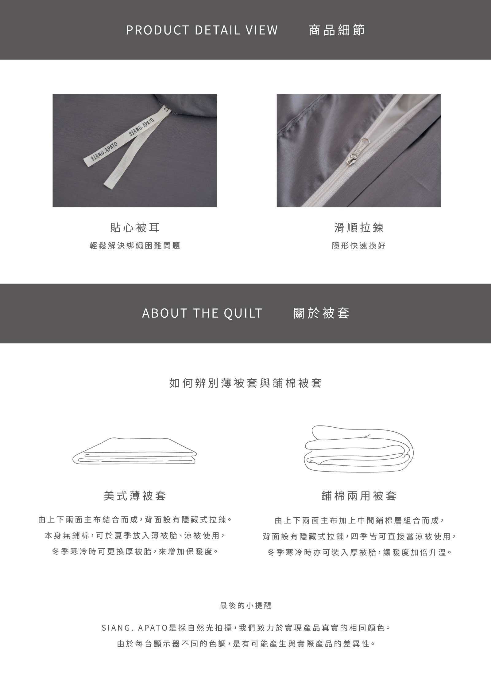 永夜 - 天絲被套 NT$3,560 NT$ 1,780 可國外配送 可國外配送 「無盡長夜,總有恆光為你指引。」 ◆ 正廠授權100% Tencel 60支天絲™ ,吸濕透氣 ◆ 高品質萊賽爾LF纖維,觸感細緻滑順 ◆ Made in Taiwan 台灣製造,品質安心 NT$3,560 NT$ 1,780 #天絲#棉被#被套#素色 尺寸 單人雙人 規格 薄被套鋪棉兩用被套 床包尺寸 寬 長 高 公分 床包鋪棉 需要 不需要 被套尺寸 寬 長 公分 被套鋪棉 需要 不需要 價格試算 數量 加入購物車 立即購買 優惠活動 消費滿 990元 即可用優惠價格加購商品 台中購物節合作5倍店家|官網及北屯門市限定! Line詢問 商品細節 尺寸指南 洗滌方式 商品評價(0)