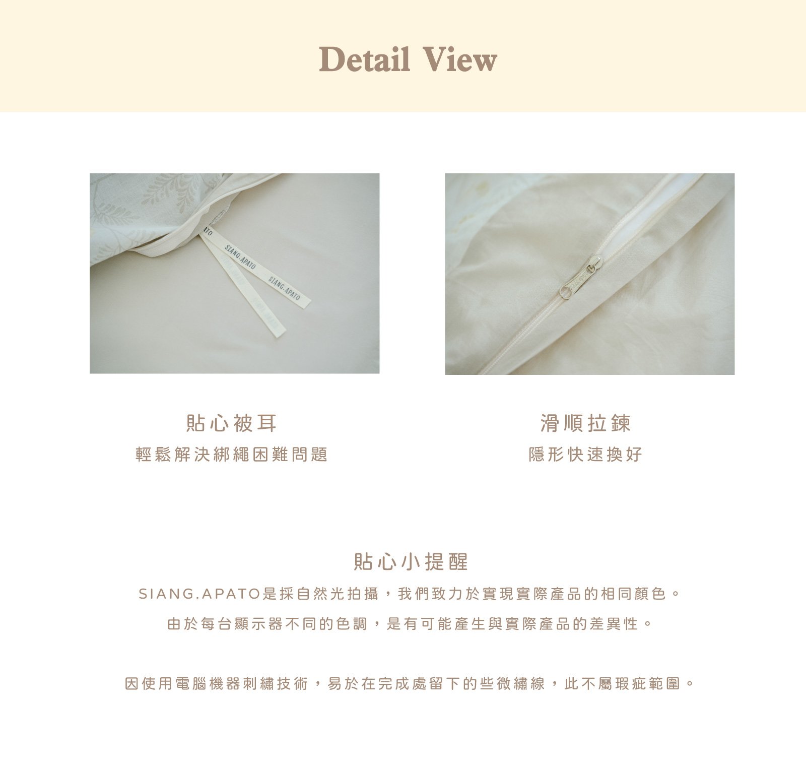 禾隅 - 華爾紗 ( 純棉 ) 被套 NT$2,160 NT$ 1,080 可國外配送 可國外配送 「在靜好時光中,漫漫前行。」 ◆ 100% Cotton 60支長纖棉,輕透柔軟 ◆ Made in Taiwan 台灣製造,品質安心 ◆ 被套內裡附被耳,被胎不跑位 NT$2,160 NT$ 1,080 #棉被#被套#長絨棉#華爾紗 尺寸 單人雙人 規格 薄被套鋪棉兩用被套 床包尺寸 寬 長 高 公分 床包鋪棉 需要 不需要 被套尺寸 寬 長 公分 被套鋪棉 需要 不需要 價格試算 數量 加入購物車 立即購買 優惠活動 消費滿 990元 即可用優惠價格加購商品 台中購物節合作5倍店家|官網及北屯門市限定! Line詢問 商品細節 尺寸指南 洗滌方式 商品評價(0)
